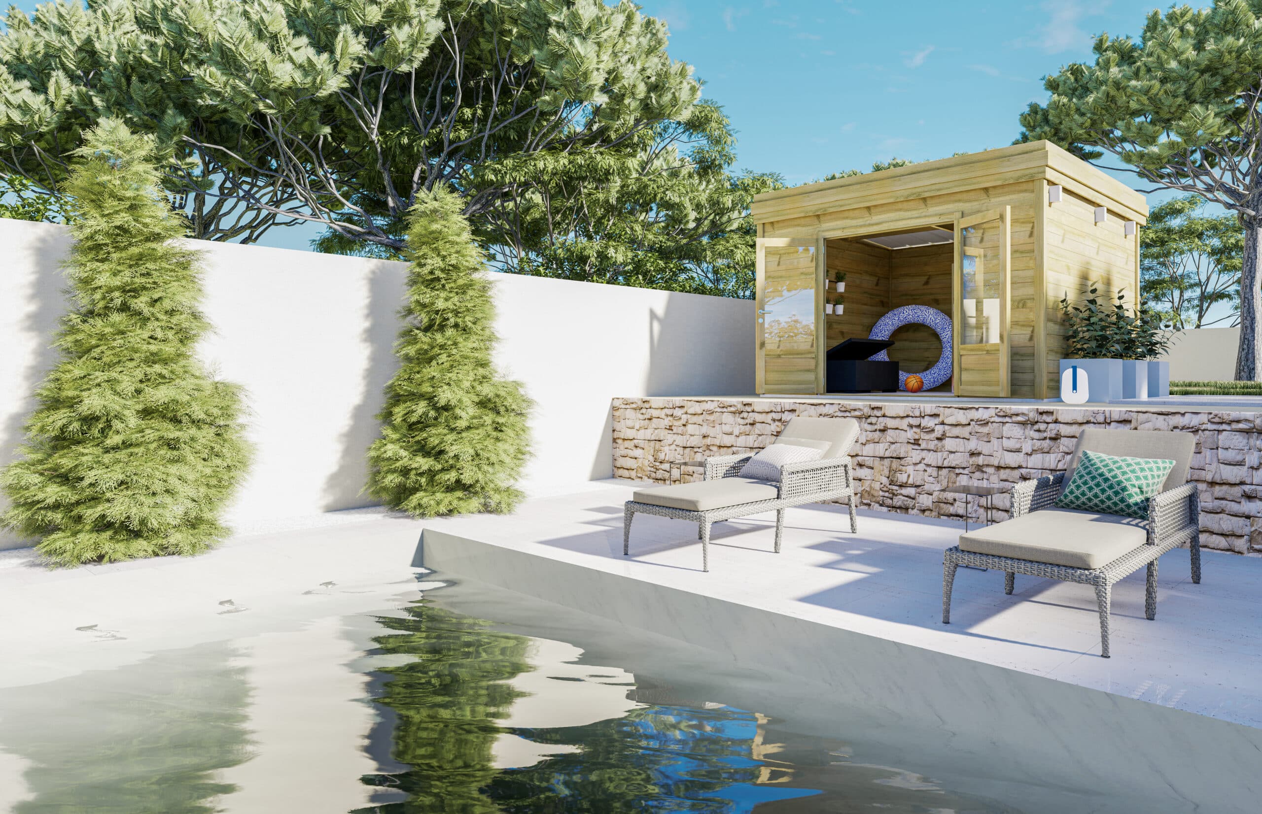 abri de jardin en bois, piscine, été, ventilation, abri français
